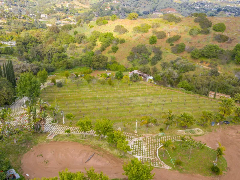 A beautiful botanical paradise boasting valley and mountain views, this 9.46+/- acres offers the potential for a private, serene backdrop to your custom view homesite and hobby farm. Extensively planted with a variety of vegetation and edible fruits, such as avocado, grapefruit, kumquat, orange, persimmon, plum, pomegranate, peach, apple, Mulberry and more. Favorable zoning will allow for many agricultural endeavors. Enjoy expansive patios with planter beds, water feature, beginnings of an outdoor entertaining area and handmade stone walkways leading to many private and beautiful spaces designed for the outdoor living experience. Varied topography creates natural boundaries between neighbors ensuring future viewshed privacy. Substantial infrastructure in place with gated entrance, underground utilities, a 1 water service supplying an irrigation system and septic approva...