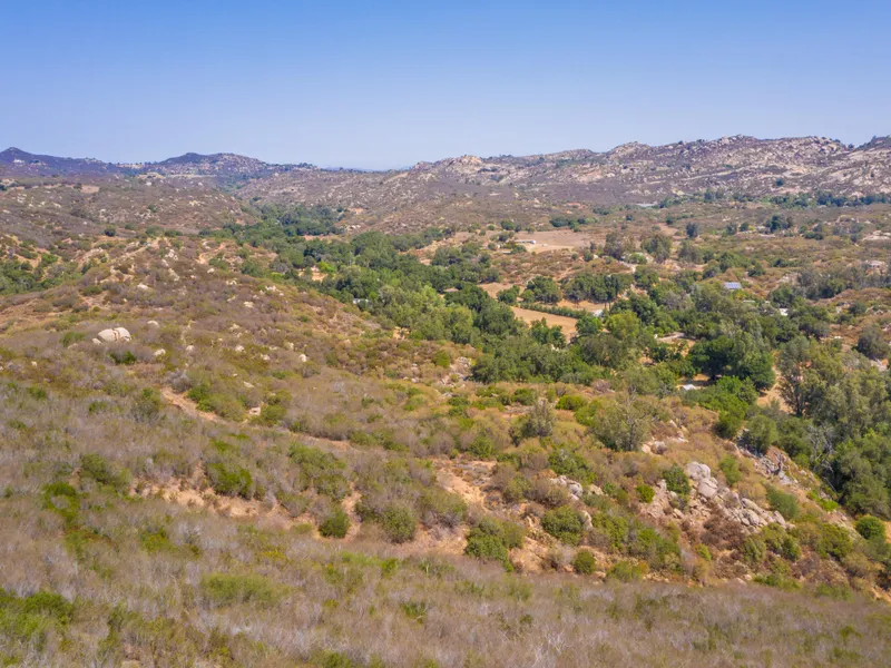 In the lush and lovely Fernbrook area south of Ramona and east of Poway, sits a 33+/- acre vacant land gem teeming with possibility. This property is well positioned for multiple agricultural uses with desirable A70 zoning and an L animal designation. Multiple, beautiful building sites exist including 2+/- acres at the highest elevation of the property. From here, there are 360-degree, unobstructed panoramic views of the surrounding countryside including the Cuyamaca Mountains and Mount Woodson. One of the striking features of this rare offering is the stunningly varied naturescape. Upon entering the property, you are greeted with an enchanting Eucalyptus forest and an abundance of flourishing native vegetation including Trees of Heaven, Coast Live Oak, Yucca, and Sugar Bush. Varied topography, terrain, and rock outcroppings offer not only natural beauty to enjoy year-round but also provide a retreat for the outdoor enthusiast. Enjoy hiking and the equestrian lifestyle from the comfort and privacy of your own property. This property also offers the potential for terraced gardens, viticulture, and a variety of pursuits. There is a water meter in place and areas ideal for an irrigation infrastructure. This property is close to the amenities and opportunities of Ramona, Poway, and San Diego, yet is private and serene, a retreat from the hustle and bustle of city life yet close to its amenities. One can truly enjoy the best of both worlds, peaceful country living with easy access to urban centers. This is the perfect blank canvas to make your vision come to life!