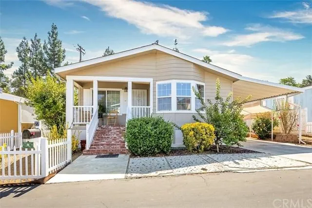Welcome Home! The inviting porch greets you to this newer 2006 build manufactured home on Green Tree park. Proud of ownership shows in the many upgrades throughout the house and it's surroundings!. Laminate flooring and open layout with 4 large bedrooms, 2 bathrooms and a large laundry room. The kitchen offers eat-in breakfast bar, middle island, plus nook with bay window and plenty of cabinets and added pantry. Enjoy the formal dining room, formal living room with vaulted ceilings and open concept design. Relax in your Master suite offering triple door closet, double sink vanity, large extra linen area and walk-in shower. Extra long driveway has a custom carport* and custom shade* with extended braces to allow full width of area to park. The private backyard includes synthetic grass, retaining walls with fruit trees, BBQ trellis cover, SHED 11x11 on slab and solid construction, planting beds on side yard, fully landscaped, beautiful entry steps and porch. You have to see it to appreciate it.
