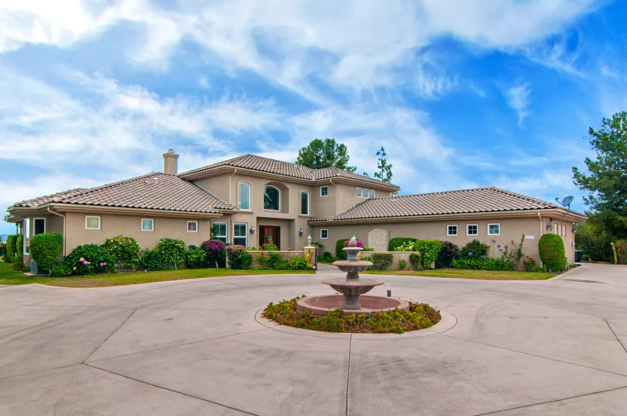 Top of the hill in "Zlatibor Ranch Estates" Gated Community with views in every direction.Step into a 20 foot high ceiling entry/living room w/radius wall to ceiling windows.Stunning stone & wood floors, large baseboards and crown moldings, with exceptional built-ins throughout.Quality built with Seller Custom Finishes and Upgrades,this 4BD/5BA (2 Master-suites) property enjoys an exceptionally large, private home site on 1.27 Acres with Pool and Built-in BBQ to enjoy the perfect California lifestyle!