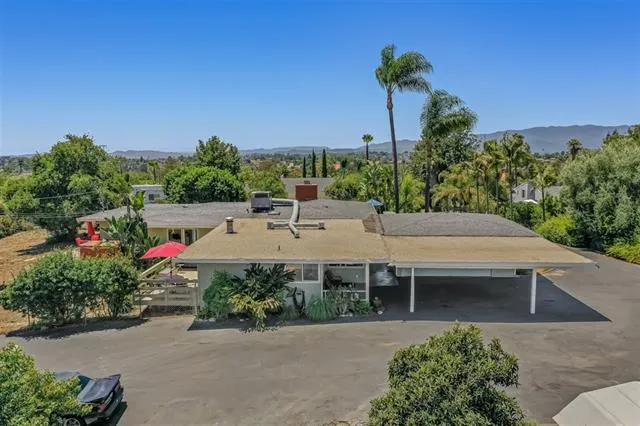 Upon entering this home you will find a newly remodeled kitchen with modern amenities including, white shaker cabinets, granite countertops, and stainless steel appliances. The kitchen opens to a warm and inviting family den and dining area that features a wood burning stove with brick surround. Down the hall you will come to the living room that offers oak hard wood floors, a wood burning fireplace and backyard view of the sparkling in ground pool. The hallway bathroom has been upgraded nicely with newer vanity, toilet and shower enclosure. The utility/laundry room could double as an office space, guest room or optional 4th bedroom. The master bedroom suite is located at the end of the hall, and it features two closets (one walk-in), and upgraded bathroom, with newer double sink vanity, toilet and soaking tub, along with access to a private deck that offers an above ground jacuzzi. This property also features a detached ADU/granny flat that would be a perfect rental for additional income, or an in-law/guest suite. The unit offers 1 bedroom, 1 full bathroom, laundry hookups and a kitchen. You will find family fruit trees located around the property that include: mango, avocado, loquat, macadamia, lemon and tangerine. The solar field is located to the west of the house and the rest of the property offers plenty of room for your RV, boat, or otherwise. A detached two car garage offers a covered parking area as well as a couple sheds on the property for plenty of storage. Secluded and private, this place is ready for you to call home.