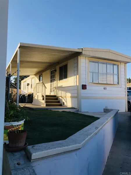 Opportunity Knocks !Immaculate property, fantastic location, featuring large living room with dinning/office area, full kitchen with Frigidaire microwave, Bosh dishwasher; Master suite with wall to wall closet, master bathroom with large built in oval tub, separate shower enclosure; Deep carport for extra parking, large 11 x 7 built in tool/storage shade, side covered patio, front little artificial turf patio, double entry doors, newer water heater, and A/C unit. Buyer to verify all measurements, data, information deem reliable not warrantied. Buyer's purchase, subject to park management rules, requisites and approval.
