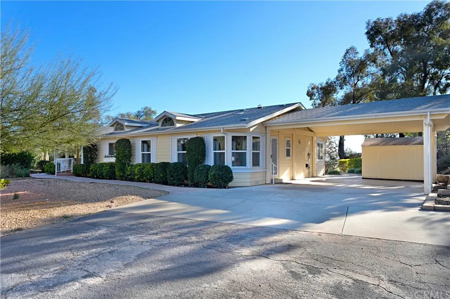 Would you like to come home to a peaceful setting with privacy? Your own mini ranch on a corner lot with close to 9 acres awaits you. Gated with a paved driveway at the main entrance. 2-working water wells and 2-electric meters. Plenty of room for a garden, fruit trees and vineyards. Bring all your animals, 2-metal shelters and metal hay barn/storage in place. Built in 2008 manufactured home has 3 beds/2 full baths with 1,972 sqft. Built to CA code with 6'' walls. Large primary bedroom with 2 closets, walk-in shower/tub and retreat - used as an office. Kitchen has white cabinets, granite countertops and stainless steel appliances. Laminate flooring in the main living area and primary bedroom. Central heating & AC. Washer/Dryer. Guest house separate from the main home, 1bed/1bath with potential has own access from Oak Mtn Rd. Native oak trees on the property and Mountain/valley views to t...