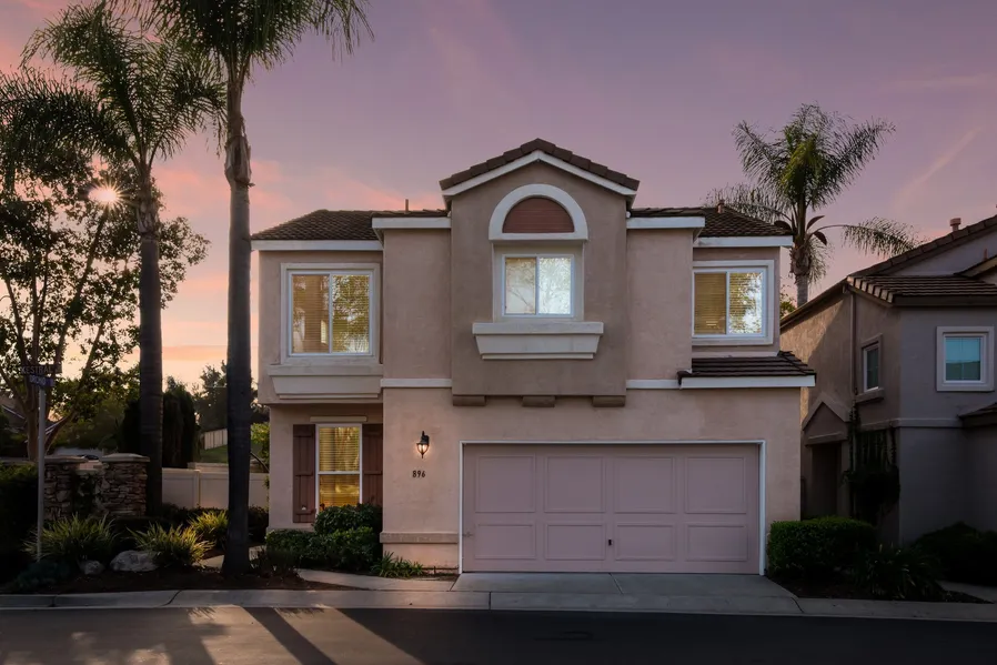 Beautiful, spacious and well maintained corner lot single family home. There are three bedrooms & three bathrooms upstairs with an office/den or playroom on the first floor - could be used as a fourth bedroom if needed. Open main living and kitchen area with an abundance of natural light. Granite counter tops, newer Samsung appliances & extra high ceilings. Tile flooring, gas fireplace, half-bath downstairs and dual-pane windows. There is easy access to the two car attached garage from the kitchen. Large master suite with a walk-in closet which is set away from the secondary bedrooms. This corner lot is one of the largest lots in the community and features a private backyard with a custom-built deck, Jacuzzi, Alma-wood awning for your evening dining pleasure and a side yard with a small built-in pool which is perfect for young kids. (Pool can removed if requested). Multiple fruit trees in the backyard and room to garden. The two car garage has laundry hookups and plenty of storage. There is a Community pool/spa and playground area. Walking distance to CSUSM, Discovery Lake and Double Peak hiking trails. Close to San Marcos Restaurant row. Top rated schools, shopping and freeway access close by..