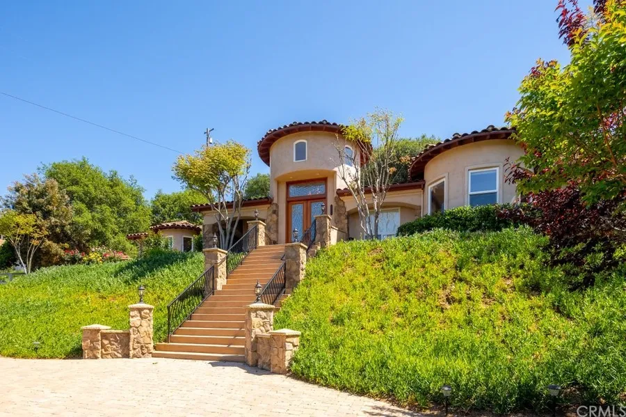 Nestled in the Pala Mesa Hills of Fallbrook this expansive CUSTOM single story Home is an entertainer's dream. Sitting on 2.5 Acres with Pool, Spa, and Waterfall, you will never have leave to vacation again. Surrounded by Oak, Citrus and other tree varieties which create a secluded setting. The home was expanded by the current owner to include an inspiring Fascade re-design to feature a Soaring Entry Turret, Massive Entertainment Room with French Doors to the Pool, Spa, Outdoor Kitchen and charming Country Garden. Additional details include hand selected Clay Tile Roof, Dual pane windows, Paver circular driveway, Tankless water heater, Newer Central 3 Zone Heating system. FULLY PAID SOLAR SYSTEM, Whole house water conditioning system. Easy access from the driveway to the Guest Entry or park along the circular drive and head up to the Main Entry along the lighted stairway. As you enter the home you are captivated by the Soaring Entry Ceiling. Flanking the Entry is the Formal Dining Room with veiw into the Kitchen which offers granite counters, ample dark stained cabinetry and Walk in Pantry. Adjoning the Kitchen is the Casual sitting room with fireplace. Just passed the Kitchen is the over-sized Laundry Room. All Bedrooms are large and spaced for privacy. The Master Bath is spa-like, includes soaking tub and Walk In granite clad custom multi-jet Shower Room. The lot extends far beyond and could be planted in Grape vines or left natural and enjoyed as it is.