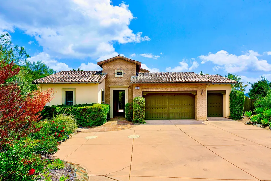 Perched upon a majestic mountaintop and offering peaceful serenity, panoramic vistas, guard-gated access and luxury residences sits Rimrock Estates. Set above yet minutes to shopping, golf and all that San Diego has to offer sits this rare single level 4211 square foot gem! The Silver Moon Residence 1 was thoughtfully designed for ease of flow, spacious elegance and optimal functionality. Volume ceilings and natural light throughout with three ensuite bedrooms in the main house, large master suite with enormous walk-in closet, fireplace and the master bath offers his & her's vanities, a soaking tub and an oversized shower. Both formal and informal living rooms, formal dining, den/office, wine cellar, a chef's quality kitchen w/ maple cabinetry, large center island w/ breakfast bar walk-in pantry and optimal storage. A seperate casita sits just outside the courtyard entry and is a perfect...