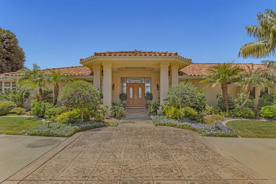 This fabulous view home in highly desirable Pointe Pacifico neighborhood has been mentioned in many publications. Enter the beautifully landscaped grounds with rose garden and first glimpse of the inspiring views to the west that are visible throughout the home and pool area. Well appointed kitchen with spacious breakfast area and counter seating that is open to family room with fireplace and built in entertainment area. Dream main bedroom with sitting area, access to patio, spacious bath and well thought out walk in closet. Office with custom designed cherry cabinetry, wainscoting and molding was featured in San Diego Home/Garden Lifestyles and is one of the bedroom count. Design Award winning vanishing-edge pool designed by Skip Phillips was in San Diego Decor & Style and has spa and outdoor cooking nearby. Garage has abundant storage, work bench and gardening bench. Owned solar system. All of this overlooks your own avocado grove.