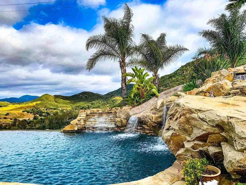 Stunning, top quality architecture and construction, in this once in a lifetime opportunity home! 14.5 spectacular view acres, magnificent infinity edge solar heated pool, waterfalls, jacuzzi, every man's dream workshop, putting green, firepit, majestic rock fireplace, guest house, room for horses! Adjacent to over 500 acres of Open Space that will never be built on! Chef's kitchen with 6 burner Thermador stove, leather finish granite counters, hickory cabinets, walk in pantry, bedrooms with on-suite baths, vaulted ceilings, loft for an office or kids play room or yoga. There is a workshop in the garage besides the separate building work shop, which is a must see! Hiking trails, grow grapes, orchards, gardens galore, gated, private, 10 minutes to freeways, 20 minutes to Rancho Santa Fe and the coast!