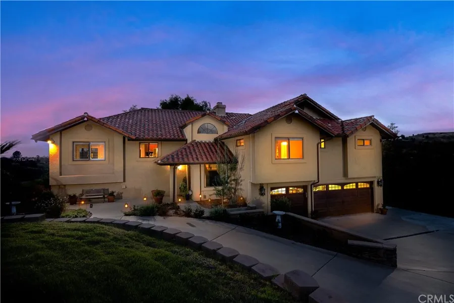 Luxurious livability awaits you! Set on nearly five acres in the rolling hills of Fallbrook with amazing views and spectacular sunsets, this is truly an estate like no other. Take a refreshing dip in the infinity-edge pool, all placed to take full advantage of your idyllic natural surroundings. The open-concept floor plan offers an expansive great room with a beautifully appointed kitchen with stainless steel appliances and granite countertops. Spacious 3,958 of living space, with 4 bedrooms 3.5 bathrooms office could be used as a 5th bedroom. The light-filled kitchen also offers views of the pool and unforgettable sunsets. Fully paid solar is just one of the many amenities of this property. The primary suite includes a sizeable bedroom area, a superb walk-in glass shower, a free-standing soaking tub, dual vanities, and a beautiful cedar-lined walk-in closet. Gather in the fantastic family room big enough for a large group. The great room has a beautiful wet bar perfect for entertaining. Mature landscaped grounds offer a variety of fruit trees, including avocado. Work from home or vacation, this home offers the best of both worlds. A spacious detached room is ready to be transformed into a guest house, dance studio, gym, or even an income-producing apartment. This estate offers a multitude of uses A70 zoning(The A70 Use Regulations are intended to create and preserve areas intended primarily for agricultural crop production.)