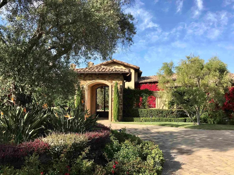 Wrapped around two sun-washed travertine courtyards with soothing fountains, this single level contemporary Mediterranean inspired estate with soaring ceilings and expansive 270 degree mountain and valley views is an entertainer's delight. Located in the prestigious guard-gated Heritage Estates in North Poway on an elevated 5.97-acre lot, this spectacular home provides serenity and true indoor/outdoor living. Large windows, sliding doors, skylights, and Solatubes take advantage of the San Diego sunshine. Immaculate and meticulously maintained with attention to every detail, this home abounds with high end finishes and custom iron and stonework. Features of this magnificent home include 6 fireplaces, a two tiered theater off of an expansive game room with full wet bar, a cedar climate controlled wine cellar, stunning home office with library loft, gourmet chef's kitchen with 6 burner Viking range, 4 stoves and duel granite islands, luxurious master bedroom with sitting area and fireplace, master bath with heated floors/two separate master bedroom closets/vanities/toilets, all ensuite generous sized secondary bedrooms two of which open to the front courtyard, and a huge laundry room opening on to the courtyard via a Mr. Ed Door. The family room features sliding glass pocket doors opening to a covered outdoor living room which is just steps away from the sparkling infinity edge pool with beach entry, waterfall jacuzzi and sunken BBQ overlooking the Lake Hodges Valley. An outdoor bath and poolside shower complete this private resort. The beautiful, private, manicured fully fenced pool and rear grounds include mature olive and fruit trees, dozens of rose bushes, and flowering plants as well as a fully enclosed irrigated vegetable garden with 11 raised planters. True farm to table living! The expansive acreage also includes a graded area for a full-size tennis court or sports court as well as room to build a large guest house. Car enthusiasts will enjoy the oversized epoxy floored 6 car garage with extensive built-in cabinets and expansive circular driveway. This magnificent estate also includes paid solar and a well for irrigation. Just steps from the property there are miles of scenic hiking and mountain bike trails, as well as Maderas Golf Course, San Diego's highest rated golf destination. All of this and its only minutes away from highly rated schools, parks, shopping, and world-class wineries. Come relax and live the lifestyle that you deserve!