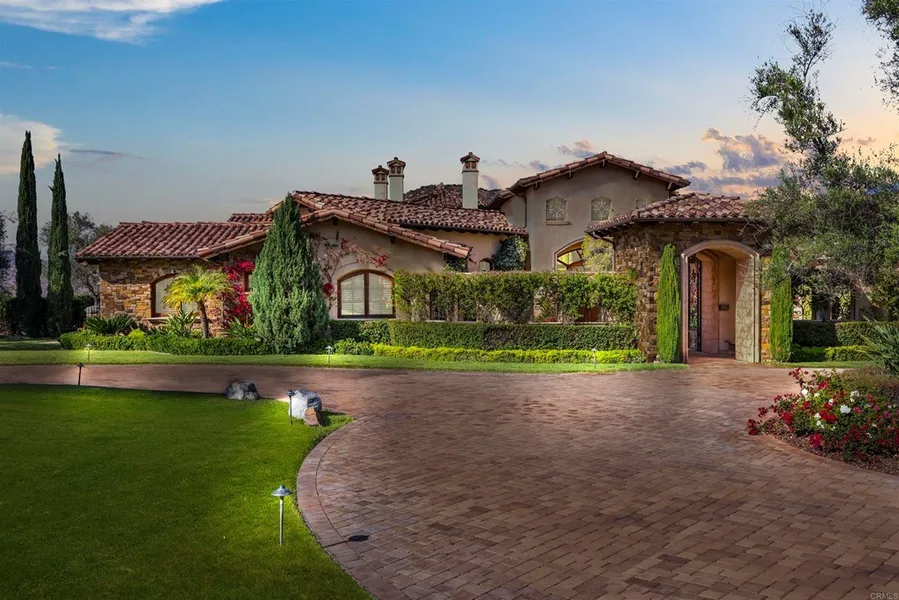 Variable Range Value: $5,250,000 - $5,950,000. Welcome to 18760 Heritage Drive located within the prestigious guard gated community of The Heritage Estates. This level of sophistication and unparalleled luxury cannot be found anywhere else in San Diego at this price point. Quality is evident at every turn of this meticulously maintained single story home which features some of the most remarkable entertaining spaces available for sale in today's market. Three distinct views surround this private and elevated 5.97ac lot with fully owned solar and private well. Relax by the infinity edge saltwater pool amidst a boulder speckled mountain backdrop or gather with family and friends in front of the fire under the covered lanai surrounded by doors that disappear into the expansive great room and chef's kitchen. A versatile and dramatic game room with full bar and adjacent theatre room sets the tone for swanky soirees or game nights with family and friends. Work from home? Be the captain of your industry from the 2-story office and library loft overlooking the mountains behind. This home features two courtyards, soaring ceilings, hand chiseled custom millwork, natural stone, 6 fireplaces, luxury brand appliances, temperature controlled wine cellar, mature landscaping with multiple fruit trees, enclosed vegetable garden, massive side yard with space for a casita addition or sport/tennis court, and a 6 car garage. These are but a few of the many standout elements that make 18760 Heritage the home you have been searching for. Just 2 minutes to world-class Maderas Golf Club, this is secluded, peaceful living within minutes of shopping, restaurants, churches, schools, beaches, and all the amenities that you desire. If you seek perfection, look no further.