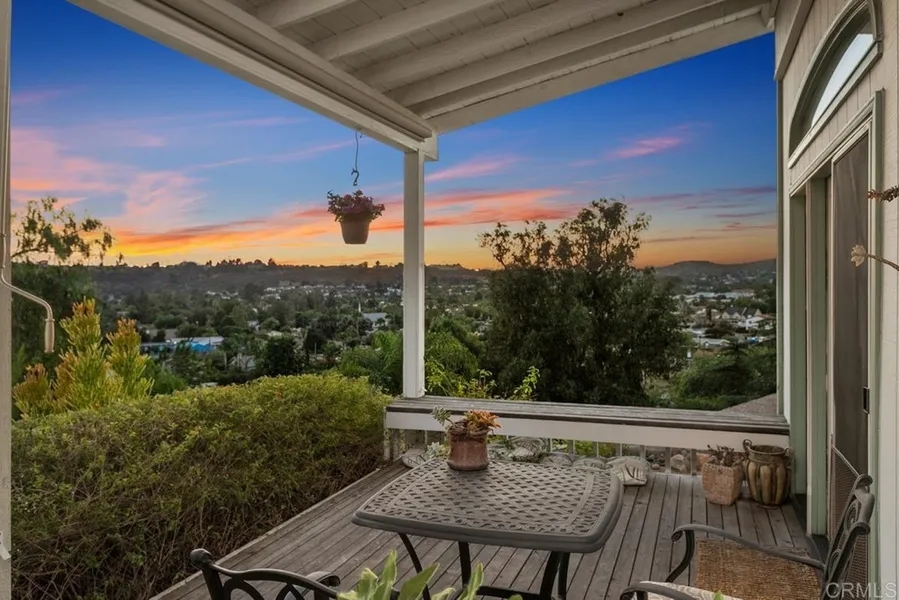 STUNNING WESTERLY VIEWS, SUNSETS EVERY EVENING, PRIVACY, AND NUMEROUS CUSTOM UPGRADES AWAIT YOU AT THIS BEAUTIFUL HILLTOP POWAY HOME!! As soon as you enter you can feel the warmth and alure of this upgraded single story. Gourmet kitchen with custom cabinets and lots of counter space with extended backsplash, high end appliances including new induction stove top, custom drop-down lighting over bar, and garden window. The huge family room with oversized bay windows offers amazing sunset views to the west, the valley below, and Mt Woodson to the east. Along with the views, the inviting brick fireplace, hardwood floors, custom wood door to front porch, and built-ins make this space a focal point of the home. Dining space is large enough for extended family gatherings and features custom lighting, large bay window, and another custom slider to back yard. This home also features great outdoor spaces with large paver patio out back, firepit, raised pergola, and new fencing. There are two sheds on the property, one used as garden shed and the other as workshop/workout space. Auto sunshades have been added to the view side of the home, ceiling fans have been added to each bedroom and the living room, and home also features Halo whole house filtration system, high efficiency water heater and heat pump, new Lennox HVAC and FULLY OWNED SOLAR SYSTEM with annual power bill at $100. Melissa Lane is a premium location with an easy walk to Midland Elementary, the Poway Farmers Market, Old Town Poway shops and eateries, and Old Poway Park that features community events throughout the year including 4th of July Festival, once upon a Halloween, Christmas Celebration, Summer Concerts, and more! Also nearby are both Hilleary Park and Aubrey Parks. For the nature lover there is lots of wildlife with hawks, hummingbirds, blue jays, orioles (a bird watchers dream), butterflies, and bunnies. End your day with views of the hot air balloons in the distance, 4th of July fireworks from the bay window, or enjoy the sounds of the distant train from The Poway-Midland Railroad while relaxing in the backyard on the weekends. This purchase includes rear lot that sheds are located on.