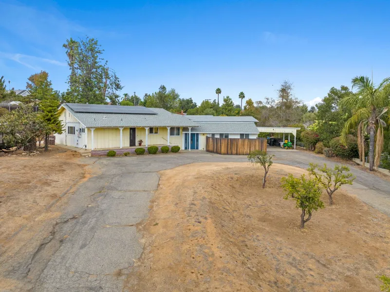 Tradition and Celebration come with the "Pizzo" name. This home has such a fun story to its inception and all the entertaining that has happened on this property over the decades. This three bedroom two bath home has character and endless potential. Where one family left off - you get to come pick it up and finish your dream home. Enjoy the great room with rustic wood ceilings, brick fireplace and open kitchen with huge island. Don't miss the upper bathroom with the pedestal tub. The windows have been replaced with vinyl dual pane and the Quiet Cool whole house fan is a dream in combination with the solar panels saving on utility costs. The original "saloon" has been updated but still kept some of the original features that tell the home's story and the lower portion of the house is perfect to be a potential ADU. The outbuilding offers a huge amount of storage and more potential for a shop or ADU. On .85 of an acre, there is room for whatever your imagination can dream up. Come see this home today and start making your plans of your own Fallbrook farm house.
