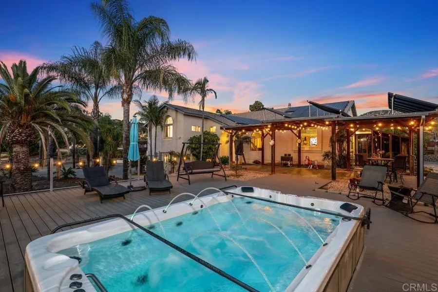 A fabulous combination of spacious living, energy efficiency & all the creature comforts of a contemporary lifestyle with city close convenience. 6KW solar system and a 2500 gallon well. plus, a super cool outdoor extra room for she-shed or man-cave, raised-deck with swim spa, 32x12 shade house for plant lovers, RV parking, 3-car garage, something for everyone and so much more. This 4 Bedroom, 3 Bath home rests up off the road, sited on an over 2+ acres, fully fenced parcel with electronic gated entrance. Numerous fruit and shade trees line the paved driveway which gives access to private 3-car garage and parking for multiple vehicles. Create your own compound for family and friends by adding an ADU or other dwelling.The secure garage entrance allows direct access to your home. With architectural arches and double-lite front door this inviting entry welcomes you to the fabulous split-lev...