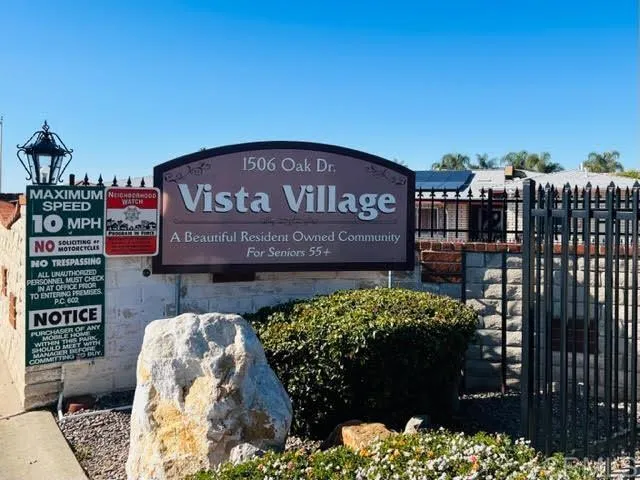 Honey, Stop the Car! Homes very rarely come up for sale in this 55+ Mobile Home parks in N SD! There is a 2 bed, 2 bath, 1120 SF home now for Sale in the Vista Village Mobile Home Park, one of the most desirable parks in N SD! You will love living in this Park; it is a very peaceful, quiet, friendly, neat & a clean park with low HOA/Park fees. The HOA/Park fees include water, trash, cable/internet, a separate community laundry building, community saltwater pool & jacuzzi, club house, a billiard, & exercise room, RV parking, plenty of visitor parking & common area maintenance. This desirable corner lot home is not on leased land, you will co-own the land with other park owners. This home includes a large enclosed Sun/California Room to enjoy entertaining during your summer days, to read your books, Nooks, & papers, and to do Facebook, etc. It also includes 2 outdoor sheds for storing your extra stuff & a small fenced backyard. Vista Village is close to restaurants, shops, coffee shops, transportation, grocery stores, pharmacy, 2 Paramedic-Fire Stations, the 76, I-78, Oceanside Beach, etc. Vista Village has a rear gate for walking to shops, banks, restaurants, etc.