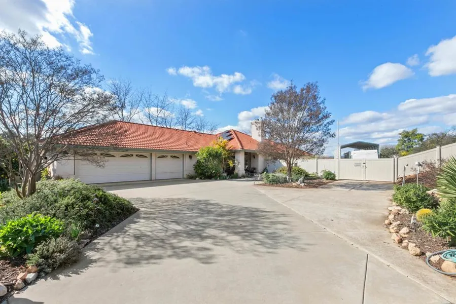 Amazing Home situated on one of the largest lots in Pecan Ranch .52 acres of tranquil living is what you will find here. This 4 bedroom 3 bath home boasts of 2360 sq.ft. of living space. Beautiful living room has hardwood along with tile flooring, a fireplace & dining room with vaulted ceilings, large kitchen leading into the hall where you will find 2 of the 4 bedrooms, full bath & laundry room that has access to the oversized 3 car garage and workshop area. On the other side of this wonderful home you will find 2 more large bedrooms with their own full baths. The master suite has a very generous sized walk-in closet, soaking tub & shower. Enclosed patio area is currently being used as a sitting area / cattery. This large lot also has covered RV/BOAT parking with electric hook-ups. Very established & quite neighborhood come this your own.
