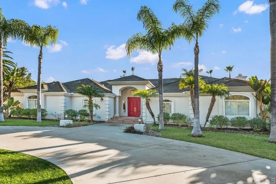 SINGLE STORY, OWNED SOLAR. Private, serene location tucked into the coveted Huntington Gate enclave of custom homes on 1 acre of flat usable land. Upon entering the light and bright formal living room, one is drawn to the large glass retractable doors which open to the expansive, south-facing back yard offering lush, mature landscaping, fruit trees, and room to build a pool, sport court, or additional structures. RV parking, fruit-bearing trees, garden shed, 3 car garage and grand circular driveway make this a truly special property. Featuring granite counters, high-end appliances, and cherry wood cabinetry, the gourmet kitchen opens to the breakfast nook and the spacious family room with fireplace. Luxurious and private primary suite with cozy sitting area and doors to the rear patio and yard. This comfortable home offers many designer features including custom bar and Versailles pattern tile floors in the Excellent Poway School District. 3D MATTERPORT TOUR IS UNBRANDED VIRTUAL TOUR.
