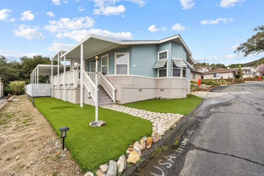 Gorgeous home in a Fantastic location!! Situated in Stone Ridge at Warner Springs Estates, a 55+ community, this spacious and updated solar-powered home shows pride of ownership. Built with 2x6 walls, the home features newer vinyl plank flooring and recently updated appliances along with light and bright rooms including a welcoming living room with its tray ceiling and fireplace covered by a stone surround. The 3 bedrooms have large closets, the hall bath is lit by a radiant skylight, and the beautiful master bath has a separate shower and an inviting soaking tub. Along with a newer roof, outside you'll find a roomy 2-car garage plus lots of additional parking, backyard garden boxes, a covered deck, and the perfect patios for barbequing, outdoor dining, or just relaxing. The home has a 433A and will qualify for multiple types of financing including VA, FHA, and conventional loans. The land-owned (no space rent) park features low HOA fees, several lakes and ponds, low-cost RV and boat storage, and a large clubhouse along with a pool and spa. Serene country living and yet just a short drive to Temecula with all its shopping, restaurants, wineries, and medical care. Come take a look. You're going to love it here!
