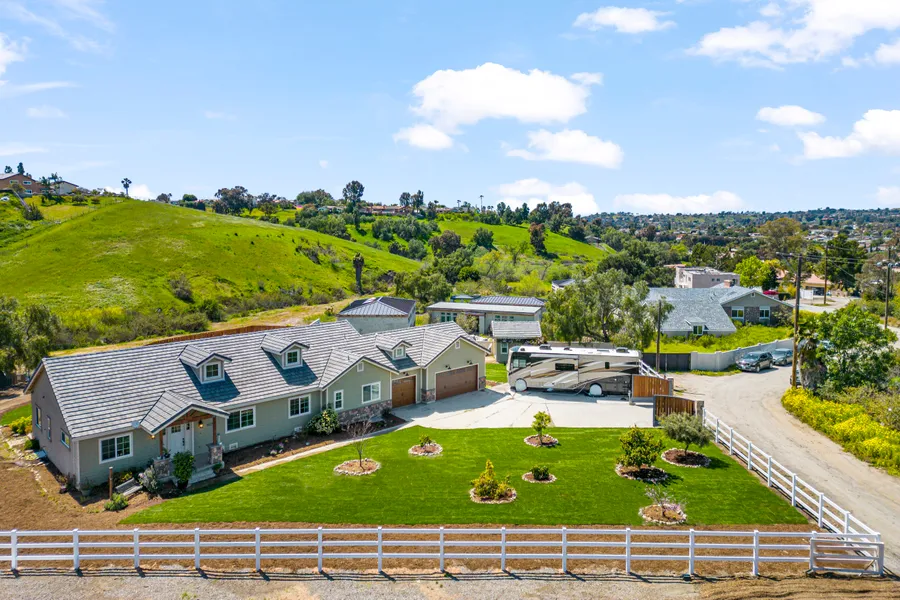 Peaceful San Diego Living in Bonita "Beautiful" California! 4 Spectacular Acres with Rolling Hills, Tranquil Creek, and Direct Access to Public Recreational Land (BLM). Expansive 3-Car Garage. RV Parking & Hookups. Solar System (Owned). This custom built (2018), single story, home is located approximately 20 minutes from Downtown San Diego and Coronado, and just down the street from Sweetwater Regional Park. Whether you are a growing family wanting land to explore, or you are downsizing and wanting a comfortable home-base while you explore the world, this is the perfect modern and low-maintenance estate to call home. As you are welcomed inside through the craftsman inspired front porch, you are greeted with a modern farmhouse design, spacious open floorplan, and views through the living space out into the green and lush valley. Enjoy cooking and entertaining family and friends in the gourmet kitchen that features stainless appliances and farmhouse sink, fresh white cabinets with quartzite counters, walk-in pantry, and a large family-style island. Adjacent to the kitchen are two additional dining areas with direct access to the outdoor patio. This wing of the home includes a home office (optional 4th bedroom) and full bath. Relax and unwind in the spacious master suite with bay window and private direct access to the backyard. Through the hanging barn door is the master bath that features a large soaking tub, walk-in shower, dual sink vanity, and large walk-in closet. Further down the hall are two additional bedrooms with a jack and jill (shared) bath. Additional modern amenities in this home include a tankless water heater, large solar system (owned), recessed lighting, and allergy friendly flooring (no carpet). The front of this property is wrapped with new vinyl fencing and includes a large double-sided wood & metal driveway gate. Also located on the property is a detached shed and chicken coop. The acreage progresses down the back of the property, to the right, and up the opposite hillside with the creek flowing through the middle of the parcel. For outdoor enthusiasts, you will appreciate the close proximity to Sweetwater Summit Regional Park. This community treasure offers camping, hiking, biking, wildlife observations, and other outdoor activities.