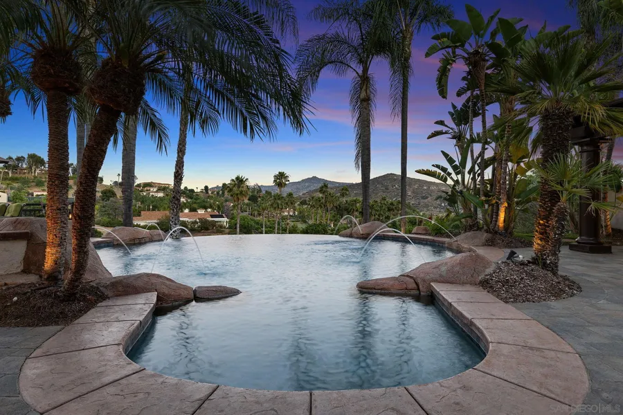 **Please See Video** ~Welcome to this luxury home in the gated community of Summit Crest Estates. Both the home & the pool are solar powered. This 2 acre property is low maintenance & benefits from an agricultural rate for water making it energy-efficient & cost-effective to maintain. ~The gourmet kitchen features high-end appliances & new porcelain countertops. The newly installed luxury vinyl plank flooring in the formal living room & office adds a touch of refinement to the living spaces. ~Step outside, you'll find a beautifully landscaped oasis. Theres new pavers & patio covers, plus a large bbq area perfect for hosting outdoor gatherings with family & friends. The resurfaced pool with a disappearing edge invites you to indulge in a refreshing swim while enjoying the breathtaking views. The two chipping greens & orange orchard add to the outdoor recreational opportunities, while th...