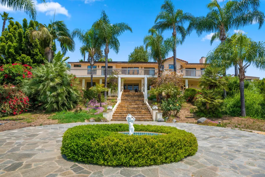 Very Profitable Rental income for short and Long term rentals! This Expansive Estate is also Perfect for Extended or Multi Family Living! Fully Fenced lot with electronic gate on 2.32 acres with attached Guest House, Detached Tiny Home, a Barn and extra pads with utilities hook ups for more tiny homes. Fabulous main house with 3 en-suite bedrooms, whole house fan, A/C, HUGE GOURMET KITCHEN w/ high-end appliances, open concept family room / kitchen & living/ dining room w/ Gorgeous Panoramic Sunset/Mountain/Hills Views! Sports court, pool/spa, waterfall, Gazebo, Owned Solar & more! DON'T MISS THIS OPPORTUNITY! Downstairs guest apartment features, master suite, spacious kitchen, living room w/ own laundry. Detached studio +negotiable tiny home 1 bedroom with a loft. Multiple fruit trees, chickens ++