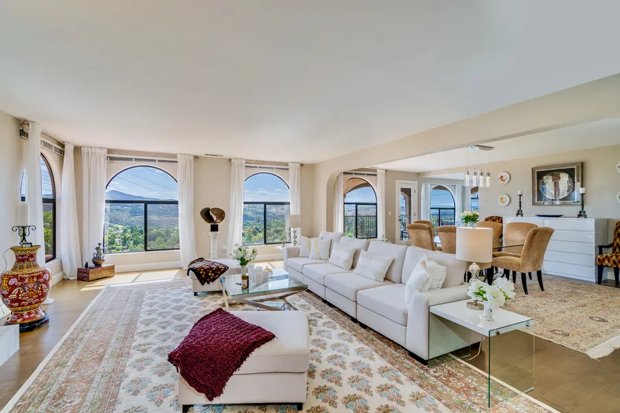 On a private street, this gated dream home rests atop a 4+ acre corner lot in prestigious Rancho Santa Fe. Boasting 180+ degree panoramic views, it offers the freedom to build additional homes, a guest house, sports court, vineyard, or even commercial/private horse boarding. No HOA, Mello Roos, CC&Rs, – you live free on your land, with no immediate neighbors and endless opportunities to create a true compound. This luxurious European-inspired estate has been meticulously renovated and upgraded in 2019. Attention to detail is evident, with hand-scraped wide plank hardwood floors, Calcutta marble countertops, and energy-efficient features, including a premium tankless water heater. Low-maintenance landscaping was added in 2022, and further upgrades, such as a new roof and an extraordinary pool oasis, were completed in 2023. The pool area includes a full outdoor kitchen, dining area and luxurious turf landscape with incredible views. The entrance features solid Brazilian Rosewood arched double doors, now priceless works of art due to international environmental regulations. Mostly south and west-facing arched windows and skylights flood the upper level with warm, natural light, offering sunrise and sunset views. The main level features a stunning living room with a fireplace, dining room, breakfast area, family room with a fireplace, and a beautifully designed wet bar with a wine fridge, all with 180+ degree panoramic views. Dual AC and heating ensure comfort throughout the home. The gourmet chef's semi-open kitchen boasts high-grade appliances. This 4 Bedroom home has 2 Bedrooms and 2 Baths on the main level, including the Primary, all of which includes spacious walk-in closets and stunning bathrooms adorning Italian Carrera showers and porcelain floors. The Primary bedroom also includes a fireplace. The lower level has two bedrooms and two bathrooms with separate private entrances. One bedroom includes an en-suite bathroom and is designed as a studio apartment with a full kitchen and a Murphy bed. A spacious storage room and a 700-bottle natural-cooled wine cellar complete this level. The oversized two-car garage offers direct access to the house, and the one-car garage can be separated for the lower-level apartments. This versatile layout is perfect for income-producing rental units, aging parents, live-in help/au pair suite or a growing family. Enjoy the option of a relaxed country or upscale city life, with easy access to I-5 and I-15, beaches, shopping, restaurants, horse riding trails, the San Dieguito River Park, Lake Hodges, the Del Mar Racetrack, the Rancho Santa Fe Golf and Country Club, the Crosby Golf Course, and The Bridges Golf and Country Club. This home has endless possibilities with incredible views and is located in one of the best school districts in California.