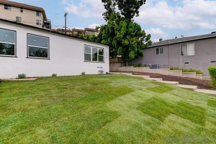 FHA and VA offers welcome! Nestled on a tranquil tree-lined street in the sought-after Rolando Village neighborhood, this beautifully COMPLETELY remodeled single-story gem evokes mid-century charm while offering modern comfort & timeless elegance. The exterior boasts a brand-new roof & windows, fencing & freshly landscaped front & backyard. Inside, the open-concept living area showcases a re-imagined kitchen layout w/ new cabinets, countertops, tile backsplash & brand-new appliances. Modernized bathrooms come with new fixtures, vanities & elegant tile work. Brilliant flooring throughout, new interior doors, mirror sliding closet doors, recessed lighting & ceiling fans in all bedrooms. Laundry closet conveniently located inside. New ductless mini-splits (AC/heat) upgraded plumbing & electrical systems, new tankless water heater & modern wiring. Finished 2 car garage w/ new door. Private b...