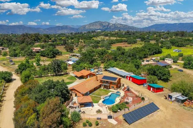Entertainer's Delight! Great possibilities to be Residential Care Facility, Air BnB, Wedding Venue, large families, with a 4,975 sq ft Main house, with adjoining bathrooms to all bedrooms! Seller is also OFFERING a $35,000 CREDIT towards remodeling the 1200 sq ft ADU! Seller is a licensed contractor and can do the work, or get your own Contractor. It is currently being used as an Office. This property is Perfect for weddings, parties and Equestrians. Courtyard with pool, jacuzzi, Stone Pizza oven, large covered Palapa with bar, BBQ area, 48 solar panels with $0 trueup! Electric panels at house and pump house wired for quick connect generator. This 6 bedroom and 5.5 bathroom home features private master suite with balcony upstairs, another master downstairs, and 4 bedrooms all with adjoining bathrooms. Remodeled kitchen with large Island, and 6 burner gas stove, double oven, double refrig...
