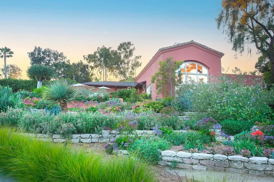 Balinese California coastal fusion, encompassing 1.29 acres of Encinitas in the center of what was once the flower growing capital of the world less than 2 miles to the beach; an extremely rare combination. Imported artistry details and craftsmanship throughout; a collaborative masterpiece of local Architect Landscape prodigy Steve Adams and Bali artists, created with importing two 40-foot containers of hand carved exotic woods such as jackfruit, teak, and iron wood shipped from Bali. Solid doors modeled after antique textiles, including a forest design from a Japanese warrior s shirt. Astute attention to details showcased with natural light, spacious volume, expansive views, and line of sight all in mind; flowing French doors creates a seamless indoor outdoor living experience. Lush eco-friendly gardens embracing sustainable water management, botanic paths meander the grounds; pool Ba...