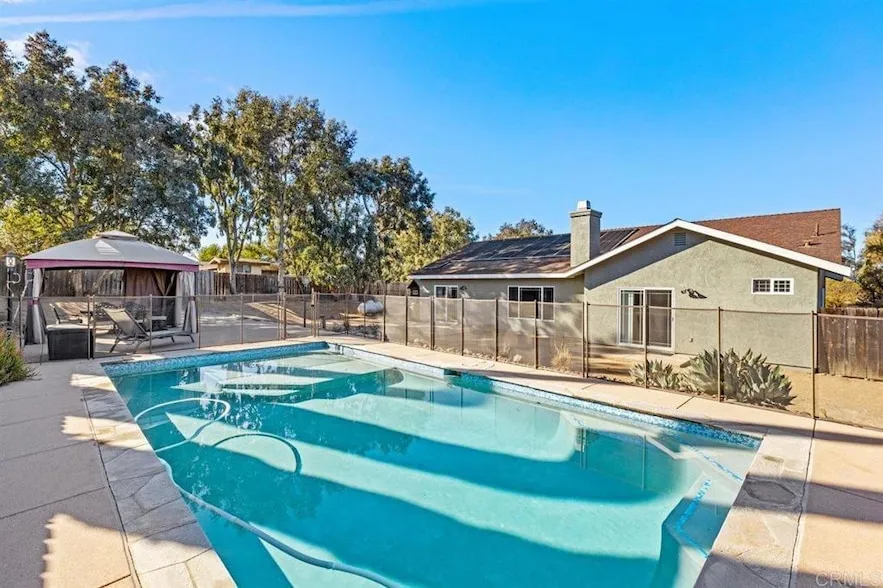 Discover this charming property in Southwest Ramona, ideally located near the Ramona Airport with easy access to Poway, Santee, and Escondido. Situated on over an acre of flat, usable land, this property offers endless possibilities with no HOA restrictions. Whether you envision adding an ADU, garage, workshop, or creating a personalized space for animals (zoned A70), the choice is yours just secure the necessary permits. The main home boasts over 1,800 sq. ft. of living space, featuring 4 spacious bedrooms, 2 bathrooms, and an attached three-car garage. The outdoor area is an entertainer s dream with a sparkling pool that includes a Baja shelf, a paved patio, and ample space to host gatherings. The large front yard and extended driveway provide additional parking, perfect for accommodating guests or recreational vehicles. Don t miss the chance to own a versatile property with a prime ...