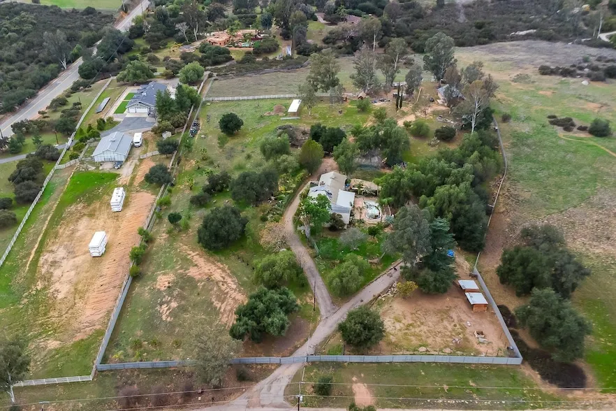 Endless Potential on 8 Stunning Acres! Finance your repairs with a rehab loan roll renovation costs into your mortgage and make this home your own! Horse property, fenced and cross-fenced. Prime for a vineyard! Nestled in the serene countryside of Ramona, 15610 Mussey Grade offers a rare opportunity to create your dream estate on 8 mostly flat and fully fenced acres with breathtaking views. This 3-bedroom, 2-bathroom home spans 1,971 sq. ft. and features central HVAC, a two-car garage, and ample potential for customization with some TLC. A standout feature of this property is the spacious detached 1-bedroom, 1-bathroom ADU (1,200 sq. ft. + loft), permitted as a barn, yet fully equipped with its own electrical panel, separate meter, and air conditioning. Whether you envision a guest house, rental income opportunity, or a private retreat, this space offers endless possibilities. The outdoor setting is perfect for animals, farming, or recreation, with plenty of room for horses or agricultural pursuits. The pool is currently drained and in need of TLC, providing an opportunity to restore or redesign your outdoor oasis. Public water, on septic. The owner is currently in the process of packing, and most belongings have been moved outside. Whether you're looking to renovate, expand, or simply enjoy the natural beauty of Ramona, this property is an incredible investment with limitless potential. Bring your imagination and make this diamond in the rough shine!