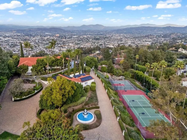 Exquisite and Luxurious Mount Helix Retreat: Set on 1.74 acres across two parcels with panoramic views, this estate offers unmatched luxury with a 4,520 sqft residence boasting 4 bedrooms, 5.5 bathrooms, a detached 2 bed, 1 bath, 950sqft guest house, a saltwater pool, 51 owned solar panels, a private well for landscaping, and dual gated entrances. Enjoy resort-style living with a tennis court, basketball court, and unparalleled privacy in this one-of-a-kind property. (10310 Fuerte Dr. and 10308 Bonnie Ln) The property boasts panoramic views of San Diego s valleys, mountains, and sparkling city lights. This stunning home features large, light-filled bedrooms, each with its own private en suite bathroom, ensuring ultimate comfort for family and guests. The heart of the home is the expansive chef s kitchen, a culinary dream equipped with a Sub-Zero refrigerator, Viking range, Dacor double ovens, and custom maple cabinetry. A spacious granite island and open layout make it ideal for entertaining. What makes this property truly unique is its thoughtful upgrades and exceptional amenities. Unlike many homes in the area, it is connected to the sewer system, and it features a private 5,000-gallon well that supplies water for the beautifully landscaped grounds, including fruit trees, lush plants, serene water features, and garden planters for growing your own fresh produce. Outdoors, this home is designed for both relaxation and recreation, offering a saltwater pool, spa, and built-in BBQ area, perfect for entertaining. Sports enthusiasts will love the Olympic-sized tennis court and half-basketball court. Additionally, the property includes a self-contained guest house with a kitchen and full bath, making it ideal for guests. Just minutes away from charming downtown La Mesa Village, offering boutique shops, local eateries, and coffee spots. Quick access to major freeways, making downtown San Diego, beaches, and the airport easily accessible. This is truly a resort-style home, providing everything you need in one stunning, private estate.