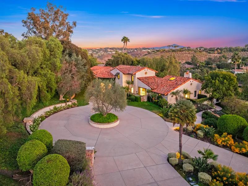 A stunning Spanish inspired California Estate on an elegant and private 3.4 Acre lot. Perfectly situated to capture breathtaking panoramic views and ideally located within the Rancho Santa Fe Covenant, this beautifully updated residence provides the perfect blend of comfort and sophistication. Gourmet kitchen looks over the grounds and outdoor entertaining area. Luxurious master wing suite with adjoining office. Stunning saltwater infinity pool with jacuzzi, outdoor BBQ, fire pit and incredible lush gardens. Solar, 3 car garage and ample additional parking.
