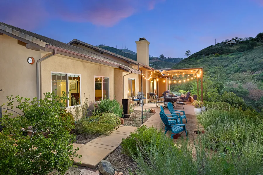 Welcome to your serene escape in the hills. This well-maintained 4-bedroom, 3-bathroom home offers privacy, quiet, and breathtaking views of rolling hills. Tucked away in a peaceful canyon, the setting is tranquil, with the soft sounds of nature. Rainbow Creek flows year-round through the property, creating a calming space for meditation and exploration. Just a short walk down Willow Glen leads to the Rainbow Creek trailhead, connecting you to the scenic Santa Margarita River trail system, ideal for hiking and outdoor adventure. The property is a birdwatcher’s haven, with daily visits from hawks, owls, hummingbirds, roadrunners, woodpeckers, orioles, goldfinches, and more. Over 15 varieties of fruit trees and vibrant native plants bring seasonal color and constant bloom. Enjoy fresh farm to table style meals from your raised garden boxes, or indulge in your own homemade pomegranate jelly...