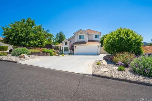Welcome to 23847 Norte Dr, a beautifully maintained 3-bedroom, 2.5-bath home with owned solar, situated on a peaceful cul de sac in the serene San Diego Country Estates of Ramona. Offering 1,950 square feet of living space on just under half an acre, this property is a perfect blend of comfort and elegance. Welcoming you as you approach the home, enjoy the professionally installed landscape with custom pavers and a calming water fountain on the front covered patio. Inside, the elegantly remodeled kitchen serves as a centerpiece for gatherings, equipped with modern amenities that make cooking easy and enjoyable. This home offers the convenience of the master bedroom on the main floor featuring stunning french doors that open to the backyard patio, along with the warmth and beauty of gorgeous hardwood floors throughout the main floor living areas. An added bonus is the master and guest bathrooms have been tastefully remodeled, creating serene spaces to unwind. The vinyl windows and sliders allow plenty of natural light while enhancing energy efficiency to pair with the owned solar panels. With a newer HVAC system and a cool home attic fan, you can stay comfortable all year round. Both front and back yards have been professionally landscaped to a park-like setting, showcasing tasteful pavers and beautiful trees with patio pergola, ideal for relaxation or entertaining. Additionally, the property includes a detached outdoor finished studio shed with plank flooring, a sink, and an AC wall unit, making it perfect for an office, art studio, or gym. For added storage, there are two separate Tuff Sheds in the back yard of the property. Enjoy easy rear access to the backyard for RV, boat or trailer storage. This is a home that offers a serene lifestyle while remaining conveniently close to Ramona's charming downtown and the estates recreational facilities that include 2 swimming pools, pickleball courts, the award-winning San Vicente Golf Course, International and Western Equestrian Centers along with 55 miles of trails for hiking/ biking/ horseback riding. Don't miss the chance to make this incredible property in San Diego County your new home.