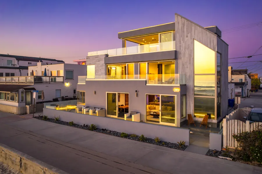 Perfectly positioned on the coveted front row of Mission Beach, this fully reimagined architectural residence captures panoramic ocean views from every level, offering a lifestyle defined by beachfront elegance, thoughtful design, and seamless indoor outdoor living. Spanning three levels of striking industrial-modern detail, the home is wrapped in floor-to-ceiling sliding glass doors that bring the Pacific into every moment of the day. The main level welcomes you with an open-concept layout anchored by a bespoke chefs kitchen, featuring a 5-burner range with direct ocean views and a sleek waterfall island. The living and dining areas flow effortlessly to a private ocean-facing patio, where an eight-person hot tub and multiple lounge spaces create a dynamic setting for hosting and relaxation just steps from the boardwalk. The second floor is home to the primary suite, a private retreat wi...