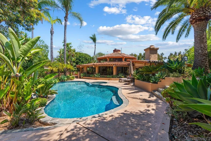 This is an exceptional Rancho Santa Fe value! The unique, well-maintained main residence features a wide open great room with high ceilings and large windows. The outdoor living areas include a vanishing edge pool with a covered cabana measuring over 500 square feet, extensive deck space, four separate seating areas, manicured mature landscaping, a sand volleyball court and even a tree house. In addition to this charming home's 3 bedrooms and 3 baths, there is a loft office providing light-filled space not included in the square footage, and owned solar! A separate 1 bedroom, 1 bath, 741 square foot ADU with its own entrance and parking area, full kitchen, laundry, living room and a view deck almost as large as the structure was added in 2020. Both homes are sited on 2.98 view acres with plenty of room to add space and enjoy spectacular westerly views and to keep a few horses. Quiet and private, this property is ready to move right in and enjoy, with unlimited potential.