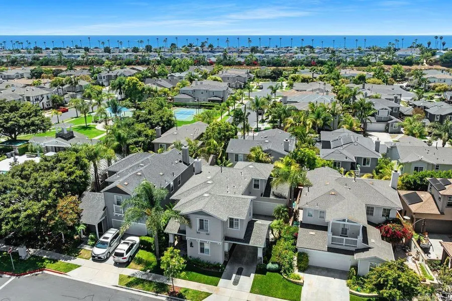 Tucked behind the gates of the exclusive Waters End enclave and hitting the market for the first time since an extensive 600K remodel in 2020, this coastal-inspired showpiece just blocks from beach access. Sunset strolls and surf sessions are a daily pleasure in this prime location. Inside, the thoughtfully reimagined floor plan features high-end upgrades throughout: eight-foot shaker doors with polished nickel Emtek hardware, a custom white oak staircase paired with matching wood flooring, and shiplap detailing that elevates every room. The kitchen impresses with expansive custom cabinetry, paneled appliances, polished nickel fixtures, and complementary brass hardware. Function meets elegance in the spacious new laundry room and a dedicated home office designed for comfort and productivity. The primary suite is a sanctuary, complete with a walk-in closet tailored for those who value impeccable organization. Enjoy exclusive community perks, including pool access, a playground, a dog park, and RV parking all behind the gates. Proximity to the 5 Freeway and Coast Highway makes daily travel a breeze, while grocery stores, resort-style hotels, and golf at Aviara, La Costa, and The Crossings are just minutes away. Whether you're looking for a turnkey beach retreat or a luxurious summer rental, this home delivers coastal living at its finest.