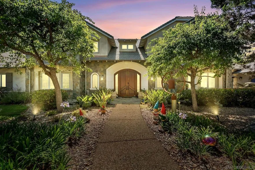 VALUE RANGE - $5,150,000 - $5,725,000 Welcome to this extraordinary custom estate offering ultimate privacy and luxury behind its own private gate complete with resort size pool and backyard, waterslide, entertainment spaces and ponds completing the serene aesthetic. The main residence spans approximately 7,938 sqft on 2 acres featuring 4 spacious ensuite bedrooms and optional bedroom spaces, 4.5 bathrooms, formal and informal living areas, a gourmet kitchen with high-end appliances, and a large family room designed for entertaining and everyday comfort. Upgraded lighting throughout completes this expansive living and floor plan. The primary suite is a true sanctuary, featuring a cozy fireplace, dual walk-in closets, a private sitting room with its own balcony, and an attached private gym creating the perfect space for relaxation and wellness. A standout feature of the property is the detached large guest house, offering a full bedroom and bathroom, kitchen, and living room ideal for long-term guests or multi-generational living. Set on beautifully landscaped grounds with expansive patios, this residence offers peace, space, and elegance in one of Rancho Santa Fe s most desirable locations. A circular driveway and oversized garage complete this exceptional offering. Conveniently located close to shops, grocery stores, farmers market, beaches & easy access to the freeway. Other: *Top Tier School District San Dieguito Unified. *Solar Panels Owned *Preventative Leak system