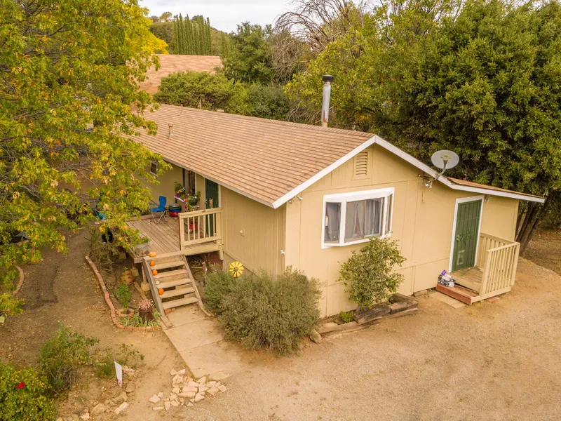 This charming mountain home is situated in a quiet portion of the Kentwood In The Pines neighborhood, just outside the quaint, historic town of Julian.A gated entry leads to the 2-Bedroom 2-Bath Mfg. Home on a permanent foundation has an additional family room, laundry, storage and more, bringing the living area to approximately 1180 sq.ft. Vehicle access from both the front and the back yard offers versatile use of the property. Surrounded by native evergreen and deciduous trees, this parklike environment creates an inviting atmosphere to visit on weekend getaways or to live in year-round.A spacious backyard which includes multiple workshop/storage outbuildings has been well maintained and offers fully-fenced, usable and level spaces for projects, landscaping, gardens, or whatever dreams you may bring.