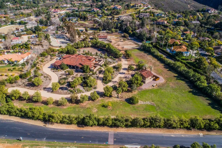 Improved equestrian parcel includes an airy 11 stall breezeway barn with tack room, plus 6 additional stalls, a large jumping arena, many fenced pastures and a 6 horse equiciser. Ride right off the property on the 30 mile Encinitas trail network and beyond. The manager's quarters with two bedrooms, a full kitchen with granite counters and 1 1/2 baths has also been used as an office or a rental. The entire property is wired for business. A spacious storage building with two large roll up doors includes room for hay, shavings, horse trailers or tractors and includes a restroom. The separate barn bathroom (2 bathrooms) and utility house is constructed of the same stonework as main residences. Each parcel is approximately 5 acres. Although they can be sold separately (and a main residence could also be constructed on the equestrian parcel), this offering is for both parcels.