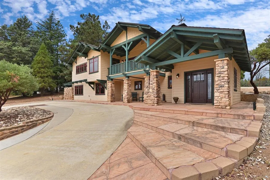 The CROWES NEST: Designed with family in mind, this beautiful 3,420 esf home and adjacent 13+ acre apple orchard is Julian living at its finest! The home features two great rooms (split level) featuring an expansive kitchen, viewing nook, dining room and great room with stunning views of the valley and hills beyond from craftsman-style French doors and windows that line the rooms! Completely rebuilt just 7 short years ago with the true spirit of the Craftsman design in mind! Warm woods were utilized extensively throughout to showcase the various rooms, ceilings, walls and stairwell, hand crafted and installed with seamless design. Simplicity of form, using natural organic materials are reflected in nuance of the property. Kitchen has the chef in mind, with an oasis of prep space and endless cabinets. The preparer of the family meals will never feel alone with plenty of seating at the kitchen bar. State of the art appliances, useful nooks and artisan back-splash are unique as they are beautiful. Guest suites (2) occupy either side of the hall adjacent to the upstairs great room. Both enjoy ample size rooms including a loft area extending their private space to be utilized in a variety of ways! Laundry room is a true mud room. Fresh in from the barn? Snow? Rain? No worries, this laundry with true room size dimensions, allows for boots, storage and even an area for crafting should the mood hit you! Outbuildings abound with a guest house, studio and barn. Guest house is totally separate with a nice living room, kitchen and bed/bath en-suite. The studio, attached to the garage, has a large open space for workout equipment, art studio, or? It also has a room currently being used as an office to add flexibility to the space. In ground pool segues perfectly between the art studio/main house and 4 stall barn with feed room, tack room and amazing storage is just a stones throw away. All of this splendor is situated on one of the most picturesque lots in Julian.
