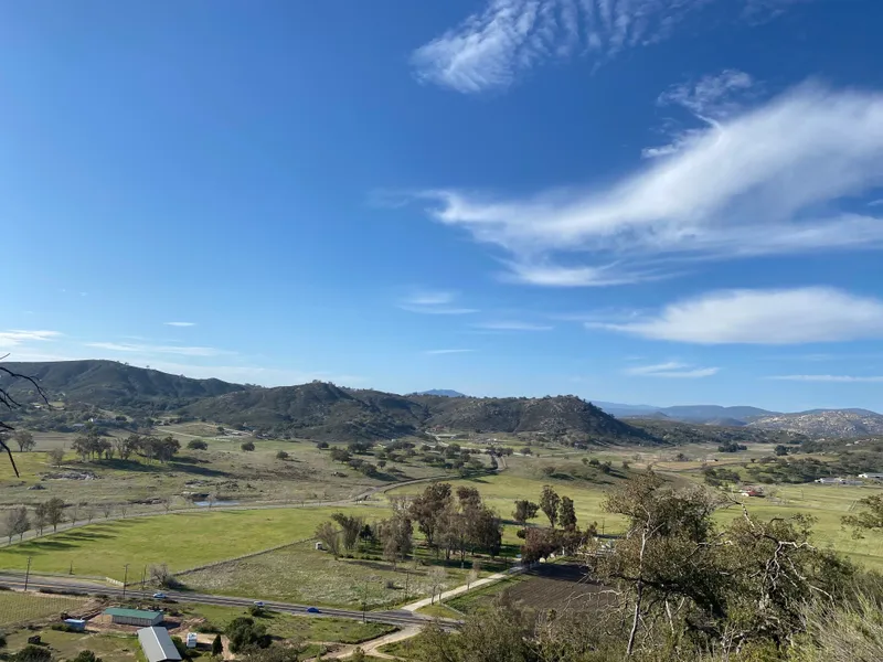 Looking for a 360-Degree view? This is it! Overlooking former Golden Eagle Farm, including views to the West towards Mt Woodson. Phenomenal sunrises and sunsets from this 9+ acre lot. One of the best locations in Ramona with desired Animal Designator "O" Zoned A72. Easy to drive dirt road opens onto a peaceful valley perfect for animals, farming, and more. Enjoy panoramic views from the potential ridgeline pad, over 1300 FT of ridgetop land! Several boulder/rock outcroppings, oak trees and more. This is an area with wells and septic. There is a well on the property. Well was drilled and capped in 2004, no power and/or equipment. Well report/ GPM and water sample test on file. Ideal farm, vineyard location.