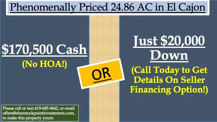 But most important of all, you can own this lot for only $20,000 DOWN! (Call or text for seller financing details and pricing).