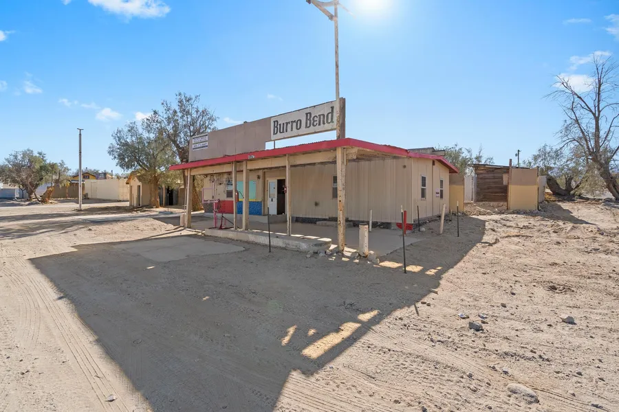 Prominently situated in the heart of Ocotillo Wells, Burro Bend offers an unparalleled commercial opportunity with prime visibility at the intersection of Highway 78 and Split Mountain Road. This 1.98+/- acre versatile property features coveted C36 commercial zoning, making it ideal for a variety of ventures. Boasting approximately 600 feet of road frontage along two major thoroughfares, the site benefits from exceptional traffic exposure. The property includes an approximately 1,100+/- square-foot retail space, ideal for a rental or repair shop, motorsports business, or other high-demand uses in this off-highway vehicle destination.