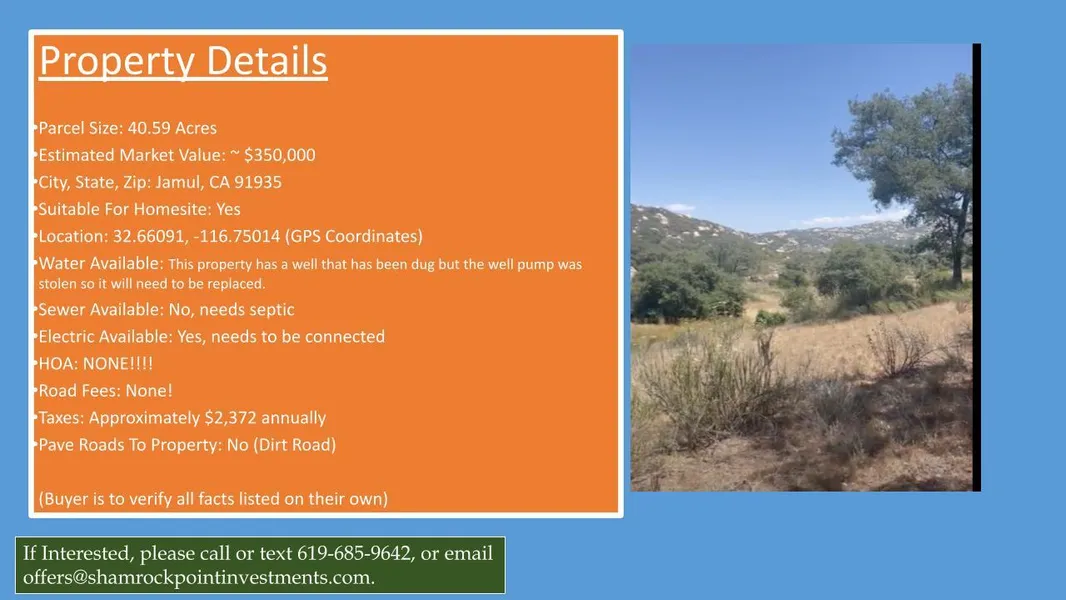 Discover the perfect investment opportunity with this 40.59-acre parcel of vacant land, located on Mother Grundy Truck Trail in Jamul, CA.