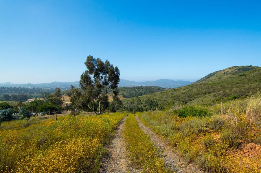 Driving Directions: From I-15 near Escondido, take Hwy 78 west. Take N Twin Oaks Valley Rd north. At Del Roy Dr, do a U-turn and double back heading south on Twin Oaks Valley Rd. Across from golf course, turn west toward property up in the hills. Parcel is on right after the house at 1102 and before 1124. Take aerial map.