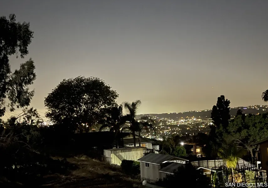 A wonderful land 0.2 acre, zoned R-1 SINGLE FAM-RES. High hill lot viewing the city lights in SPRING VALLEY SD. This land is in a cul-de-sac, and surrounded by exterior landscaping, tall trees trunk and the Dictionary Hill hiking trail. Take advantage of the water & sewer already installed and build your dream home with a spectacular backyard deck. Broker's sign present on land.