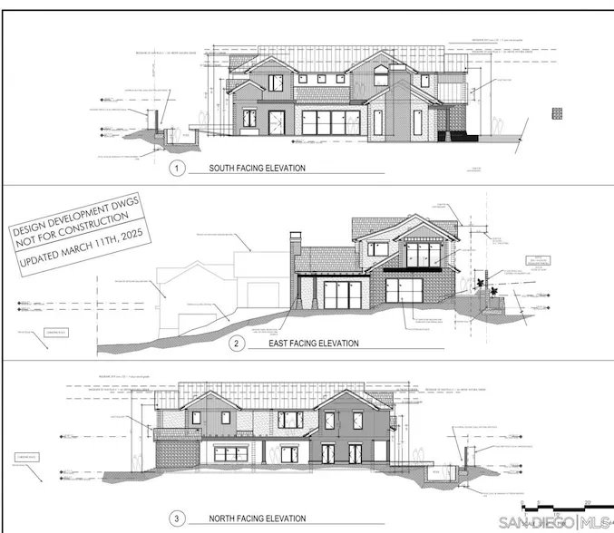 Modern Rendering with intentional flow and flexibility, offering approximately 5,974 sq. ft. of total living space (excluding the garage and roof deck). The main residence spans 2,483 sq. ft. and features a seamless connection to outdoor areas, including a terraced patio and optional roof deck. The detached 833 sq. ft. garage is complemented by a 1,067 sq. ft. rooftop deck. A two-level ADU adjacent to the garage provides 992 sq. ft., including one bedroom and a small office space ideal for guests, work-from-home, or rental potential. A lower-level 456 sq. ft. basement offers bonus flex space and integrates with a plunge pool set into grade without stacked retaining walls. The first floor includes an optional bedroom and bathroom, while the second floor is designed for three bedrooms and three bathrooms across 2,043 sq. ft. The design incorporates permeable pavers, strategic slope grading, and a proposed bioswale for optimal drainage and environmental sensitivity. This home blends function, privacy, and high-end design in one of Encinitas most sought-after coastal neighborhoods. A quick jot down to world famous south Ponto beach, grand view surf, Leucadia beach and Encinitas county park. If you like to golf Omni Resort or Encinitas Ranch Golf! Walking distance to Olympus park for family fun a zipline for the kids, slides, skate ramp and a dog park.