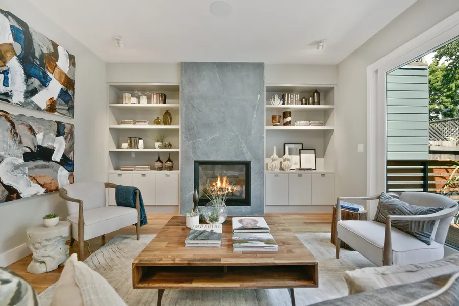 Just completed, stunning down to the studs jewel box tucked away on a quintessential Russian Hill lane. This charming home is the ultimate in style and craftsmanship. The heart of the home is the open living room, dining area and kitchen. The large deck off the living room is perfect for dining al fresco. The designer kitchen features custom cabinets, Bertazonni gas oven, Fisher & Paykel refrigerator and is anchored by an impressive island with casual dining. Top floor's primary bedroom has a walk-in closet, tall ceiling and french doors opening to a sunny deck overlooking greenery. The second bedroom has a gracious deck and a full bath completes this floor. The entry level has an inviting foyer; large multi-purpose room ideal for a bedroom, family room, home office and/or gym; full bath and laundry closet. The garage is large enough for a full size car and small car in tandem. The house...